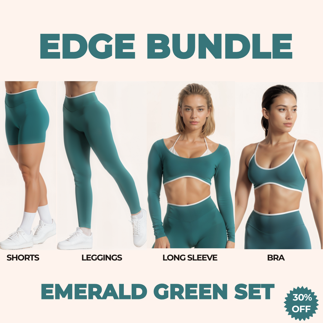 Includes the Edge Long Sleeve, Edge Backless Bra, Edge Leggings, and Edge Shorts — all in matching colors for a cohesive, standout look. Enjoy 30% off when purchasing the full set.